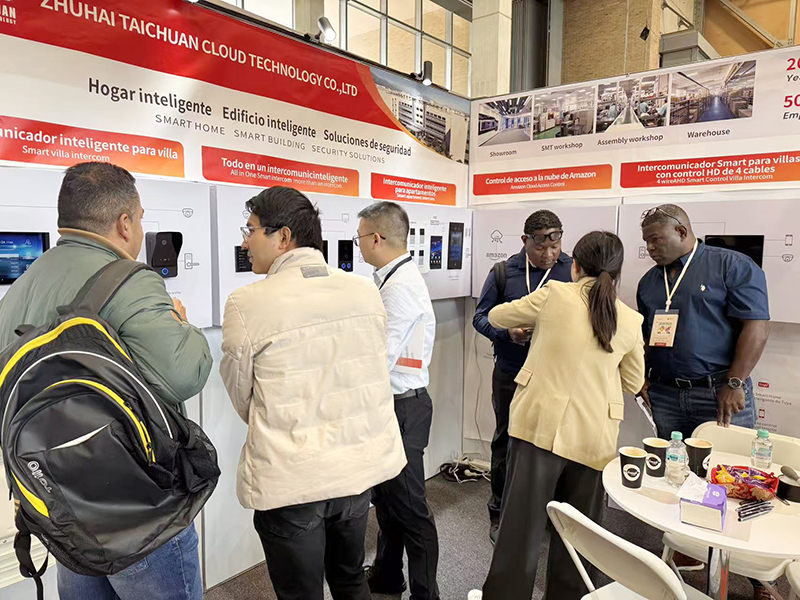 展會(huì)現(xiàn)場(chǎng),太川展位前人流不斷,大家紛紛駐足咨詢。工作人員通過(guò)現(xiàn)場(chǎng)演示與方案講解,全方位呈現(xiàn)了智能別墅對(duì)講機(jī)、全屋智慧中控屏、智能公寓對(duì)講系統(tǒng)、云對(duì)講系統(tǒng)、4 線高清智能對(duì)講等產(chǎn)品,實(shí)現(xiàn)從設(shè)備性能到場(chǎng)景全流程展示。